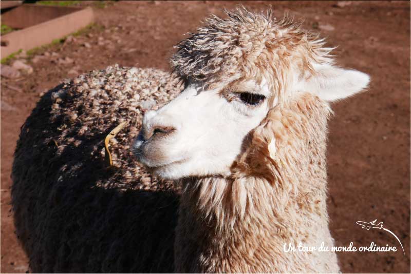 Nous redescendons en direction de la Vallée Sacrée. Sur la route, un arrêt mémorable dans un élevage de lamas.