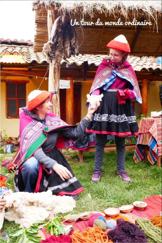 Elles discutent en riant beaucoup et nous ne captons rien à la langue quechua qu’elles utilisent entre elles. Heureusement, elles communiquent avec nous en espagnol, ce qui est tout de même plus simple !