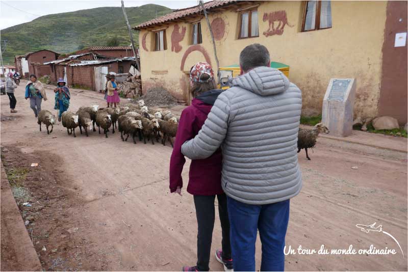 Aujourd’hui, nous nous immergeons dans le petit village de Patabamba perché loin de tout à plus de 4000 mètres. Même si les mobiles ont fait leur apparition ici, les villageois y vivent comme au début du siècle passé, dans des maisons faites d’adobe : terre mélangée à de la paille, briques séchées au soleil. Les troupeaux de moutons animent les rues, guidés par leur berger.